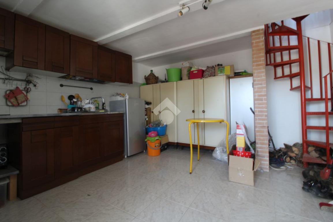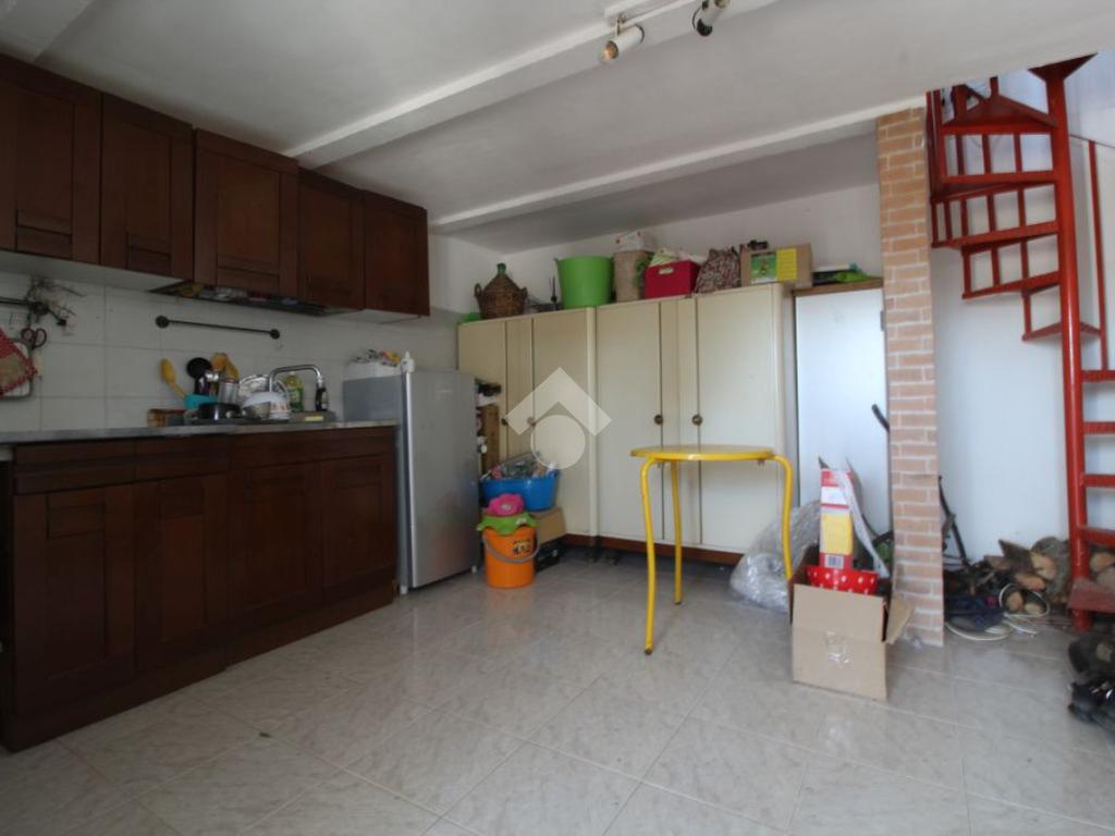 L’appartamento dispone di doppio accesso, dal piano terra e da quello seminterrato che sono collegati anche internamente da una scala a chiocciola.