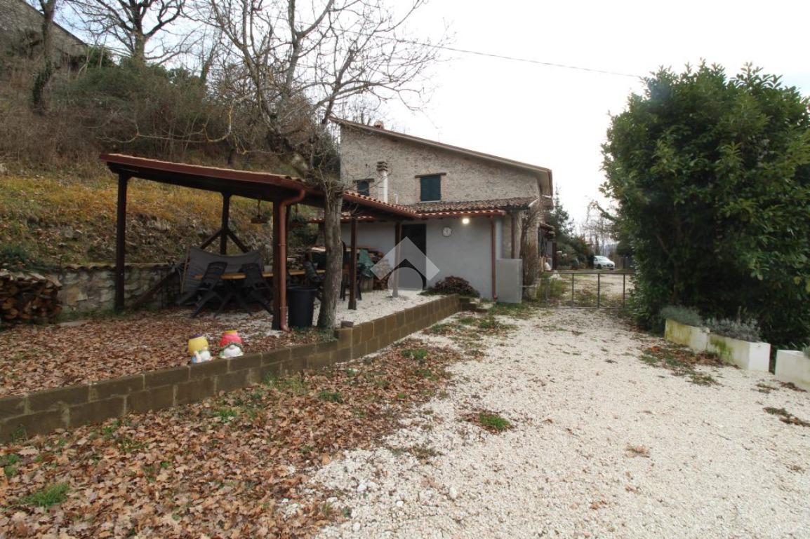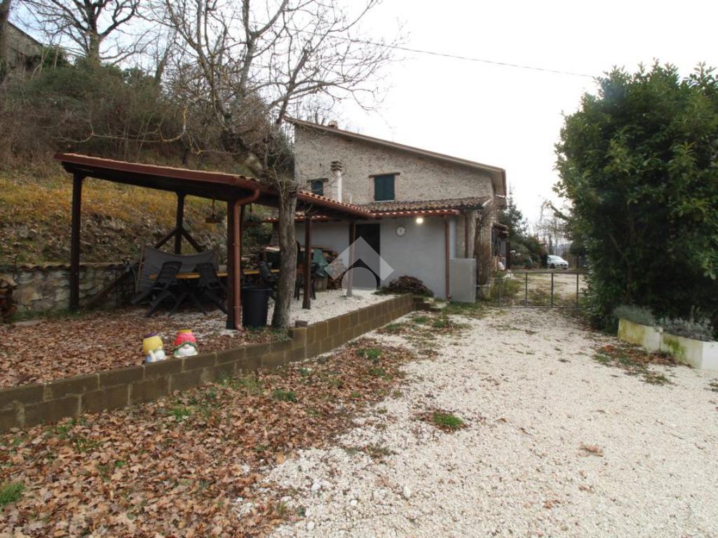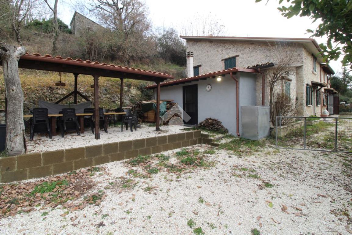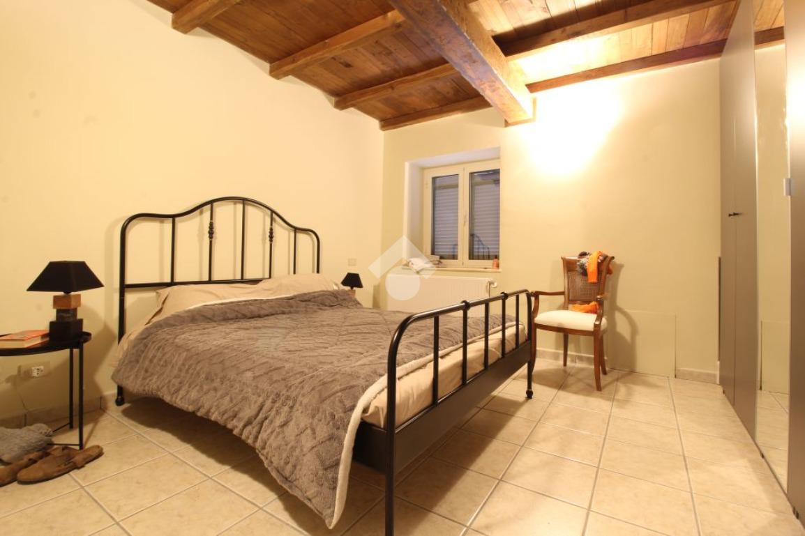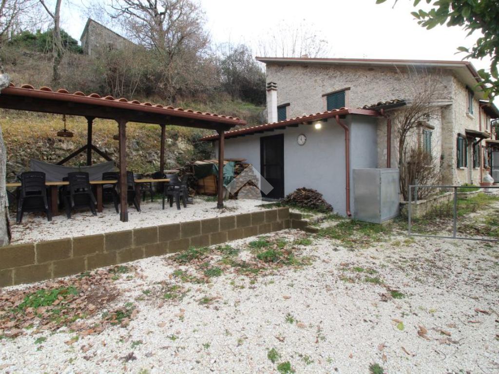 All’ingresso del paese di Pozzaglia Sabino, porzione di casale in pietra sviluppato su 3 livelli.