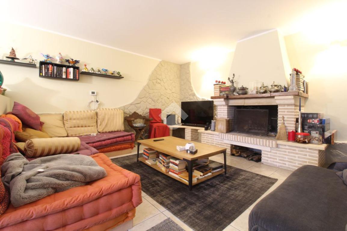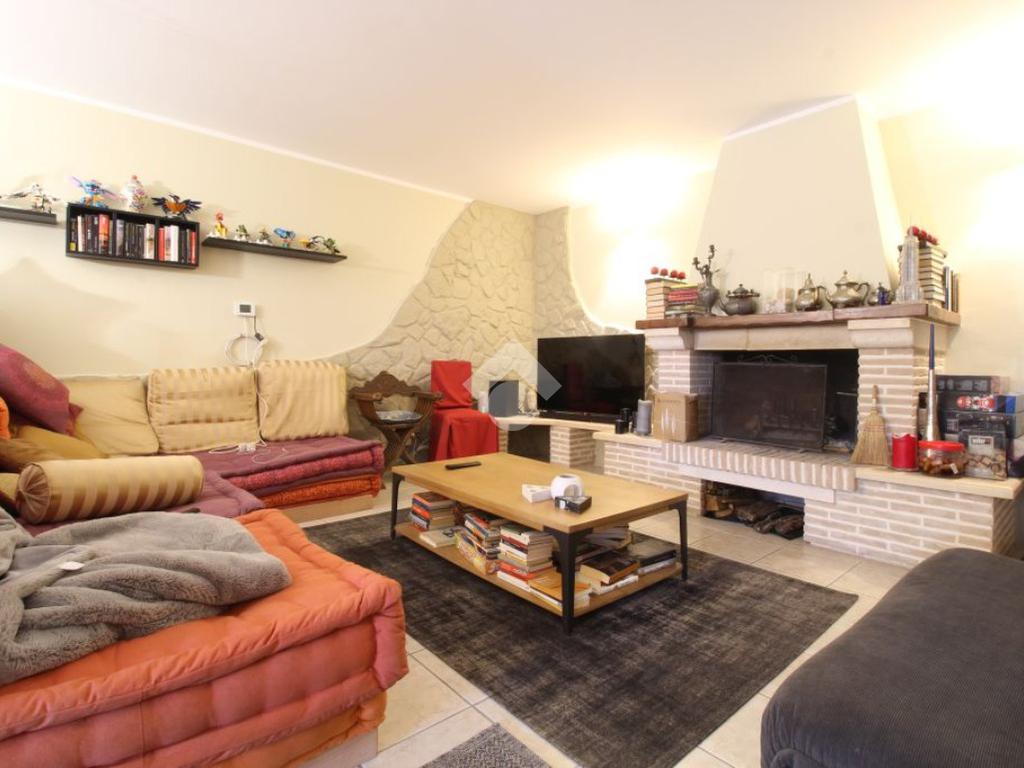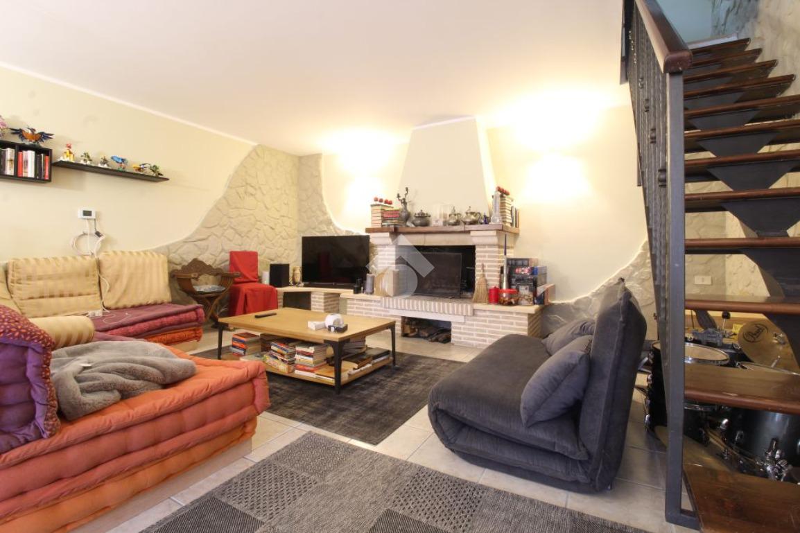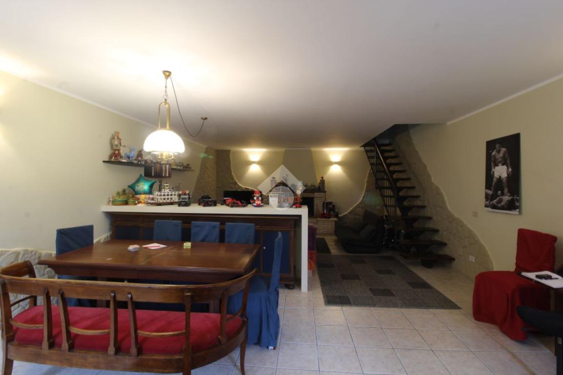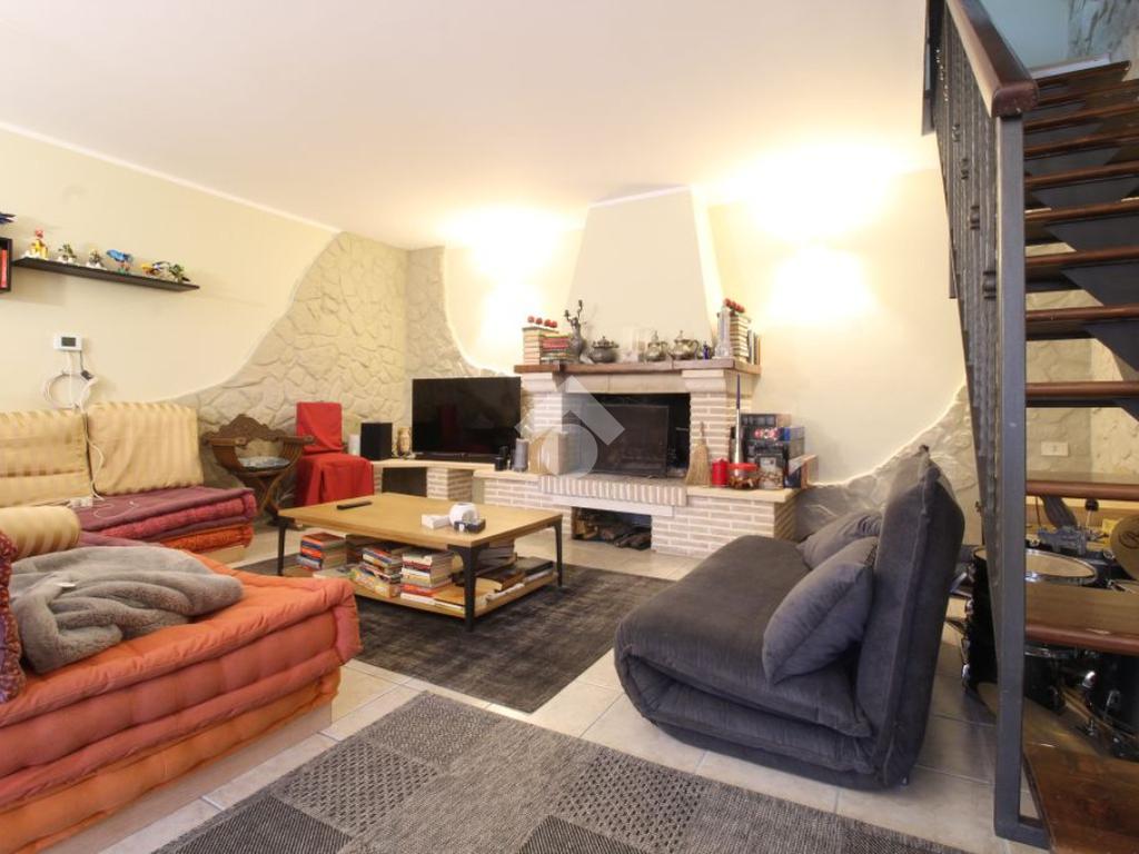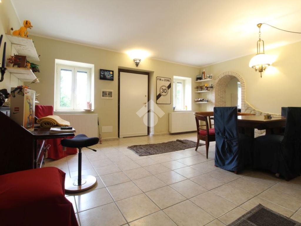 All’ingresso del paese di Pozzaglia Sabino, porzione di casale in pietra sviluppato su 3 livelli.