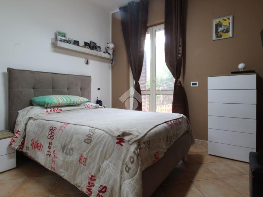 Situato all’interno di una struttura ultimata nel 2006 e composta da soli 3 immobili, l’appartamento è ubicato al piano rialzato e dispone di ingresso, salone con angolo cottura e terrazzo, camera da letto matrimoniale con bagno privato, camera con terrazzino esterno accessibile anche dalla sala, disimpegno e bagno con doccia.